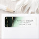 Ereal Mist Ombre Emerald Green Watercolor Design de Casamento Moody com pintura manual de aquarelas sombrias textura de fundo desvanecida, linhas de visão de folha de ouro e trilhas de pontos e bordas confetti. Uma tendência e moderna Procure qualquer estação, com uma paleta de cores suave e sonhadora: Preto, Verde Mint, Branco e ouro, com uma letra chic popular de pincel Script Font -Personalizada de Endereços de Retorno de Casamento! Veja meu compro para ver a suíte de casamento inteira para este design!