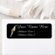 Fotografia de uma concha em forma de espiral branca com linhas douradas, sobre fundo preto. Copyright ©Kimberly J Tilley. Personalize este rótulo de endereço de concha com suas informações de correspondência.