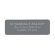 These return address labels feature a clean, minimalist design with a solid gray background and crisp white text. The layout is simple and centered, showcasing elegant serif typography that adds a touch of sophistication. Perfect for personalizing your mail, these labels offer customizable fields for names and addresses, making them ideal for both formal and casual correspondence. Their straightforward aesthetic ensures clarity and professionalism, while the muted color palette keeps the look timeless and versatile.