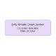 Modern, chic return address label with a casual handwritten calligraphic script with clean flourishes for the personalized name + a simple, minimalist all caps font for the address. On a pale purple background.