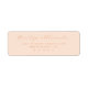 These return address labels feature a simple, elegant layout with a soft peach background and muted gold text. The design includes an ornate script font for names, paired with clean serif fonts for addresses, creating a classic and refined look. Perfect for personal correspondence or invitations, the generous spacing ensures clear readability while conveying warmth and sophistication. The minimalist aesthetic focuses on typography, making it ideal for those who appreciate understated elegance in their stationery.