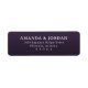 This return address label features a sophisticated and elegant design with a deep purple background that exudes luxury. The layout is clean and centered, showcasing bold serif typography for a formal touch. The minimalist style focuses on the essential information without any additional graphics, creating a polished and professional look perfect for special occasions or official correspondence.