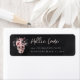 Um design de endereço de devolução temático de Halloween chique e assustador, apresentando uma ilustração de crânio floral encimada por flores de aquarela rosa e roxa em um fundo preto defumado. Personalize com seu endereço de devolução.