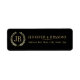 Design de etiqueta de retorno simples e elegante. Dourada e prateada coroa com um monograma personalizável. Modelo de texto personalizável e plano de fundo com alteração em preto.