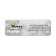 Este elegante e chic White Christmas Return Address Label design diz "Feliz Natal" em texto de moda e apresenta um bonito prato e fundo branco com um Enfeites de natal branco com fita branca. Personalize com seu nome e endereço de retorno para um envio super conveniente.
