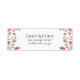 Bonito, elegante e moderna celebração de casamento devolva etiquetas de endereço para suas cartas, convites e pacotes especiais! Borda de folhagem de cor aquosa e folha com rosas cor-de-rosa e púrpura, flores de cor vermelha pansy, magnólia branca, macarão doce e eucalipto, folhas de molduras em ambos os lados do rótulo, com espaço no meio para o nome do seu casamento e detalhes de endereço! Projetado para coordenar com a nossa coleção de casamento da Flower Dance.