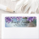 Um rótulo de endereço de devolução personalizado e elegante com hortênsias em aquarela roxa sobre um fundo gradiente azul, verde e azul-esverdeado. O texto é completamente editável. Use a opção Personalizar para fazer alterações. Use a ferramenta Editar design para fazer mais ajustes, como alterar a fonte, a cor da fonte ou o arranjo do texto.