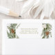 Essas maravilhosas etiquetas de endereço de volta de feriado apresentam uma borda da coroa de Natal com folhagem botânica elegante, e cones de pinho com flores brancas festivas e texto dourado em um simples fundo branco.
