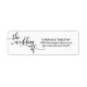 Envie seus convites de casamento, cartões de envelope rsvp e agradeça as placas com esses adesivos preto e branco de devolução com O CASAMENTO DE em letras pretas topográficas de script. Modelos editáveis para que você possa alterar a fonte e o tamanho.