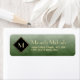 Mostre sua classe interna com essas etiquetas de endereço de retorno elegantes e na moda verde e preto de monograma. Este simples e sofisticado design de gradiente escovado com uma estrutura moderna em forma de diamante com uma borda dourada pode ser personalizado adicionando seu primeiro monograma. Imagem plana, NÃO metálica.