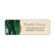 A borda esquerda desta elegante e moderna etiqueta de endereço de retorno de convite de casamento apresenta uma esmeralda verde aquarela agate borda com falsa brilho dourado. O texto personalizável combina o script de escrita manual verde e as fontes de impressão em um fundo bege de champanhe.