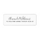 Etiquetas de endereço de retorno simples, mas elegantes, com seu nome em uma fonte elegante de script de caligrafia e o endereço abaixo. Você pode alterar a cor do plano de fundo e da fonte para qualquer cor personalizada com a ferramenta de personalização.