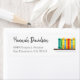 Este modelo de etiqueta de endereço de retorno personalizado exclusivo apresenta livros coloridos em uma prateleira e seu nome em um roteiro dinâmico. Você pode usar dois nomes próprios, seu nome de família, um nome comercial ou qualquer outro formato que atenda às suas necessidades. Você também pode alterar o estilo, a cor e o tamanho do texto e a cor base. Crie sua própria aparência personalizada com as ferramentas intuitivas de design e verifique em nossa loja uma grande seleção de etiquetas de endereço de retorno!