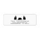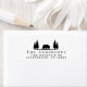 Etiqueta de endereço de retorno em russo, com uma silhueta de um urso andando numa floresta de árvores, e seu nome e endereço de família em uma simples tipografia moderna.
