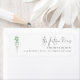 Endereço de Devolução da Sra Futuro Script Eucalipto. A Sra Futuro está em um estilo de letra manuscrita informal definido em script e seu nome e endereço estão abaixo e alinhados à direita. Folhas de eucalipto verde em aquarela descem pelo lado esquerdo.