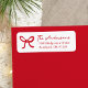 Adicione um sotaque alegre ao seu correio de férias com estas etiquetas de endereço de retorno com um arco vermelho desenhado à mão e uma inscrição vermelha correspondente num fundo branco. Seu nome familiar é exibido em um roteiro elegante, manuscrito, com seu endereço de retorno mostrado abaixo, criando um visual personalizado que combina lindamente com cartões de Natal, convites de férias e correspondência sazonal.