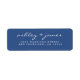 Chic, moderna e simples etiqueta de endereço de retorno de casamento com seus nomes em branco, com uma escrita manual elegante em um fundo azul clássico. Basta adicionar seus nomes e endereços. Desenvolvido exclusivamente para você pelo Happy Dolphin Studio. Se precisar de ajuda ou produtos correspondentes, entre em contato conosco em happydolphinstudio@outlook.com. Estamos felizes em ajudá-lo a fazer seu casamento o dia mais bonito!