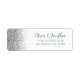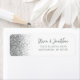 A borda esquerda desta elegante e moderna etiqueta de endereço de volta do casamento apresenta um design de cintilação falsa prateada. O texto personalizável combina a escrita manual de cinzas e as fontes sans serif em um fundo branco.