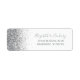 A borda esquerda desta elegante e moderna etiqueta de endereço de volta do casamento apresenta um design de cintilação falsa prateada. O texto personalizável combina a escrita manual de cinzas prateadas, fontes copperplate e itálico em um fundo branco.