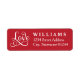 Vermelho e branco ousados criam um cenário impressionante para a caligrafia elegante que lê "Amor" com um floreio fluído neste rótulo de endereço de devolução de casamento. O nome da família e o endereço de devolução são exibidos em letras maiúsculas limpas para um toque de acabamento polido.