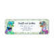 Colorida etiqueta do Dinossauro com o endereço de volta do casamento com noiva de dinossauro engraçada e noiva e verde-coloração de água botânica para trazer alegria pré-histórica da selva Jurássica para o dia do seu casamento. Caligrafia tipográfica branca moderna com fácil personalização de modelos. Noiva T-Rex psicodélica exclusiva e noiva com cor d'água eucalipto folhagem original, da artista Catherine Sweetman Ideal para a recepção ou janto de ensaio no dia do casamento. A suíte de casamento combinando inclui tudo o que você precisará na sua divertida viagem de casamento