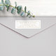 Carimbo de endereço de devolução de casamento elegante e simples, com um design minimalista moderno, apresentando o nome da noiva e do noivo em tipografia serifada estilosa com uma borda elegante, combinado com um texto de endereço de envio personalizável em uma fonte da moda para um visual sofisticado e chique em dourado e branco clássico.