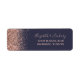 A borda esquerda desta elegante e moderna etiqueta de endereço de volta do casamento apresenta um rosa dourado faux glitter design. O texto personalizável combina manuscrito colorido de rosa pálido, fontes copperplate e itálico em um fundo azul escuro.