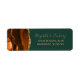 A borda esquerda desta elegante e moderna etiqueta de endereço de retorno de convite de casamento apresenta uma borda agitada de aquarela em tons de ferrugem e laranja queimada, aparada com falso brilho dourado. O texto personalizável combina um script de escrita manual dourado e fontes de impressão em um fundo verde de caçador.