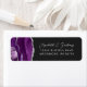 A borda esquerda desta elegante e moderna etiqueta de endereço de retorno de convite de casamento apresenta uma cor d'água púrpura e borda agitada com falso brilho prateado. O texto personalizável combina a escrita manual de cinzas prateadas e as fontes sans serif em um fundo negro e escuro.