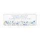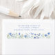Este rótulo de endereço de devolução de chuveiro de noiva floral é decorado com flores silvestres em aquarela azul e tipografia elegante.