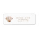Etiqueta de endereço de devolução de concha. Única e elegante, esta etiqueta de endereço de devolução de casamento na praia moderna apresenta uma bela concha pintada à mão em tons terrosos neutros. O texto é bege e o fundo é branco. Encontre itens correspondentes na Coleção de Casamento na Praia de Aquarela Seashell.