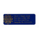 Etiquetas de endereço de volta de Natal azul e dourado. Marinho azul com um grande floco de neve de cristal dourado, este rótulo tem espaço para até quatro linhas de texto, que é uma fonte impressa à mão que se alinha à esquerda.