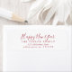 Essas etiquetas de endereço de retorno de feliz ano novo vermelho minimalista são perfeitas para um simples cartão de feriado ou convite. A design apresenta tipografia clássica vermelha e branca, emparelhada com uma fonte rustica, mas elegante, com estilo manuscrito.
