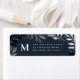 Uma etiqueta elegante de ida e volta de férias, com ramos de pinheiro desenhados à mão numa paleta festiva de cor azul-prata e marinho concebida por Stacey Meacham.