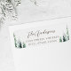 Etiquetas de endereço de ida e volta de feriado personalizadas que incluem design de pinheiros com aquarela rustica com nome da família caligrafia e endereço no fundo da cor da cinza clara.