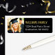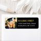 O design moderno do rótulo de endereço personalizado apresenta uma foto de formatura do graduado com texto de endereço de devolução dourado e branco e fundo preto. Personalize o texto e o fundo para combinar com a foto ou as cores da escola!
