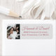 Este modelo de etiqueta de endereço de retorno de chic apresenta sua foto junto com seus nomes em um script elegante e clássico acima de seu endereço em uma base de cinza de luz. Funciona maravilhosamente com uma variedade de temas de casamento e também é excelente para outras ocasiões especiais! Você pode usar dois nomes próprios ou qualquer outro formato adequado às suas necessidades. Você também pode alterar a cor do plano de fundo e o estilo, a cor e o tamanho do texto. A cor de texto padrão é uma elegante sombra de ouro rosa. Crie sua própria aparência personalizada com as ferramentas intuitivas de design com sua foto favorita e sua inspiração. E por favor, verifique nossa loja para uma seleção de etiquetas de endereço de retorno distintas!