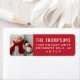 As etiquetas de endereço de Natal apresentam uma foto favorita de Natal com endereço de retorno branco moderno e fundo vermelho cardeal festivo. As cores podem ser completamente personalizadas para coordenar com sua foto.
