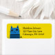 Adicione um toque divertido e colorido à sua correspondência com estas etiquetas de endereço de devolução. Eles apresentam um design ousado e moderno com um gato cartoon em azul e preto contra um fundo amarelo brilhante e ensolarado.