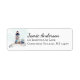 Esta etiqueta de endereço de volta de feriado costeiro apresenta um farol de cor d'água decorado com luzes e arcos de Natal. Perfeito para anexar à sua praia ou cartas de Natal com tema náutico.