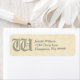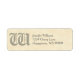 Esta design apresenta uma obra de arte original feita para parecer um pergaminho natural. Este modelo apresenta um ponto para o seu próprio monograma é uma letra gótica em negrito e uma letra cinza para o seu nome e endereço numa letra itálica clássica. Um belo e clássico olhar. Personalize estas etiquetas de endereço de retorno com o seu próprio nome inicial e endereço para as suas próprias e belas etiquetas.