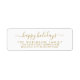 Dourado Elegante moderno e branco script de feriados felizes com lista de favoritos Nome da família Rótulos de endereço de retorno. Apresentando um script de caligrafia com letras maiúsculas e minúsculas com "feriados felizes" dizendo . Excelente para a época de férias de inverno, fácil de personalizá-los com seus nomes e retornar informações de endereço.