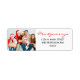 Adicione um toque personalizado às suas mensagens de feriados com estas etiquetas de endereço de retorno de fotos da família personalizada. O design apresenta uma foto à esquerda para você personalizar e seu nome e endereço à direita em um moderno script vermelho manuscrito. Desenhado pela artista ©Susan Coffey.