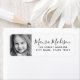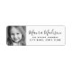 Etiquetas de endereço de retorno elegantes que contêm os campos de foto e modelo personalizados para nome e endereço. Nome ou nome da família em uma fonte elegante de script de caligrafia. Certifique-se de que a foto cobrir a área de hemorragia se você não estiver usando uma foto quadrada.