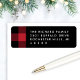 As etiquetas de endereço de retorno de feriado apresentam texto personalizado branco que pode ser personalizado com um sotaque de fundo padrão em cor vermelha e xadrez de búfalo preto.