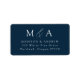 Etiquetas de endereço de retorno de casamento legantes que incluem as iniciais do monograma do casal separadas por uma amostra e apresentadas em um roteiro de caligrafia branca em fundo de marinho. Personalize as etiquetas de endereço de volta do monograma com o endereço abaixo. As etiquetas são perfeitas para usar em casamentos, chás de panela e outros eventos especiais.
