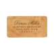 Elegante etiqueta de endereço de devolução com o seu nome em uma fonte de caligrafia romântica com o endereço abaixo em um fundo de papel vintage manchado.