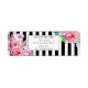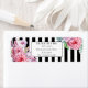Belíssimos arranjos florais cor-de-rosa com listras negras e brancas contrastantes. Papelaria para casamentos e comemorações disponíveis em nossa loja zazzle.