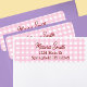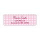 Etiquetas de endereço de devolução em um estilo fofo com texto feminino em um fundo xadrez rosa. Personalize adicionando seu nome e endereço na janela de edição.