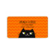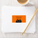 Etiqueta de endereço de devolução de gato preto engraçada, fofa, moderna e kawaii com padrão de chevron laranja. Escolha perfeita para qualquer amante de gatos!